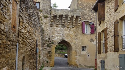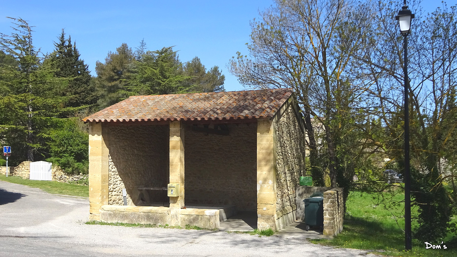 Note : La photo de gauche représente la maison des Templiers. Celle du milieu, une fontaine contemporaine qui a inspiré la bricole.
