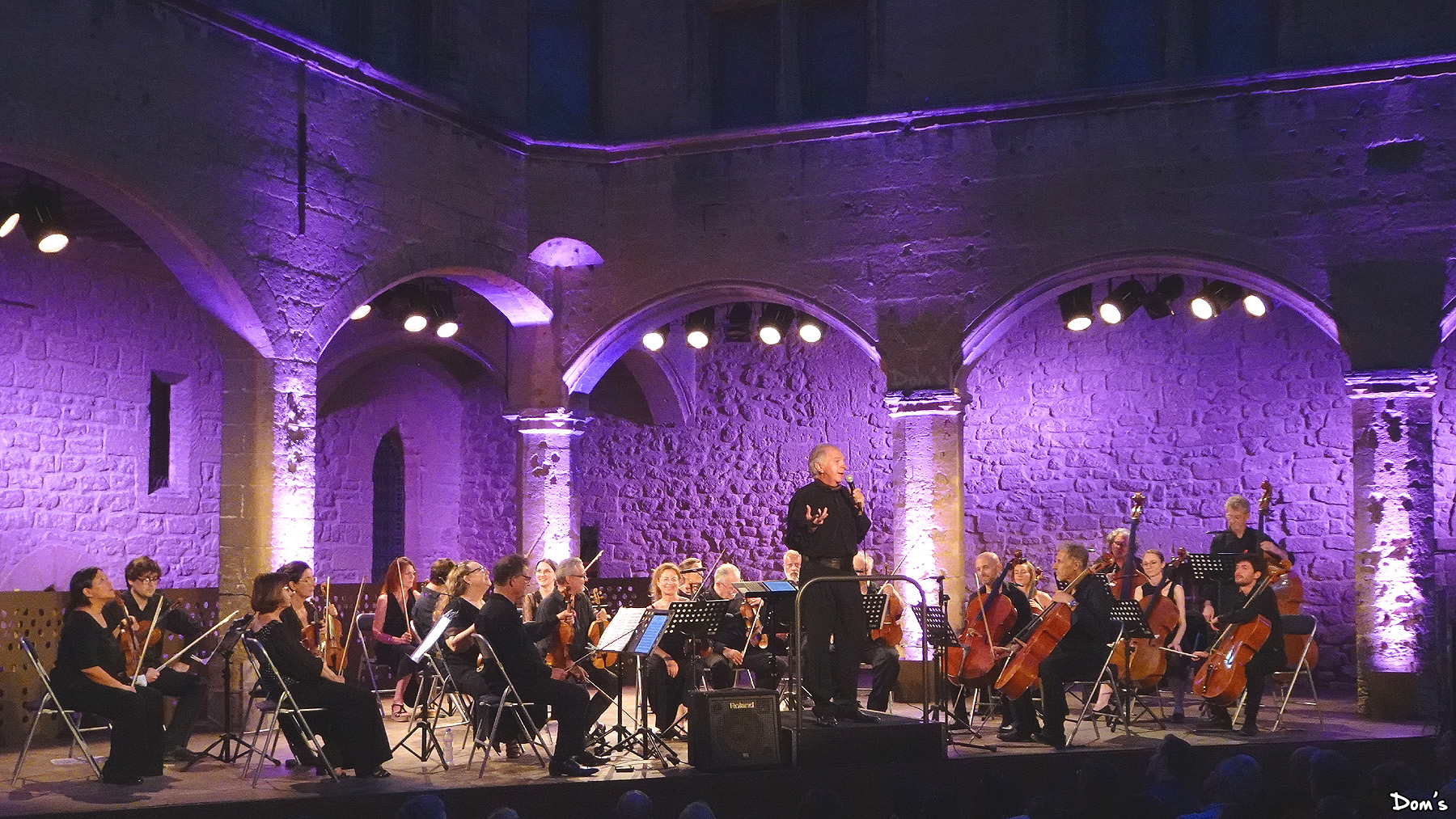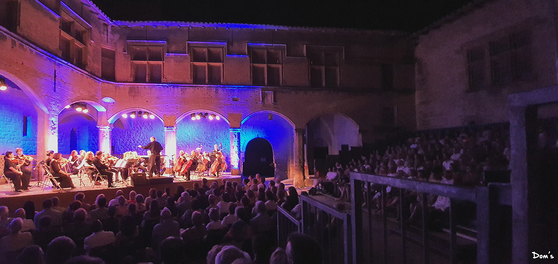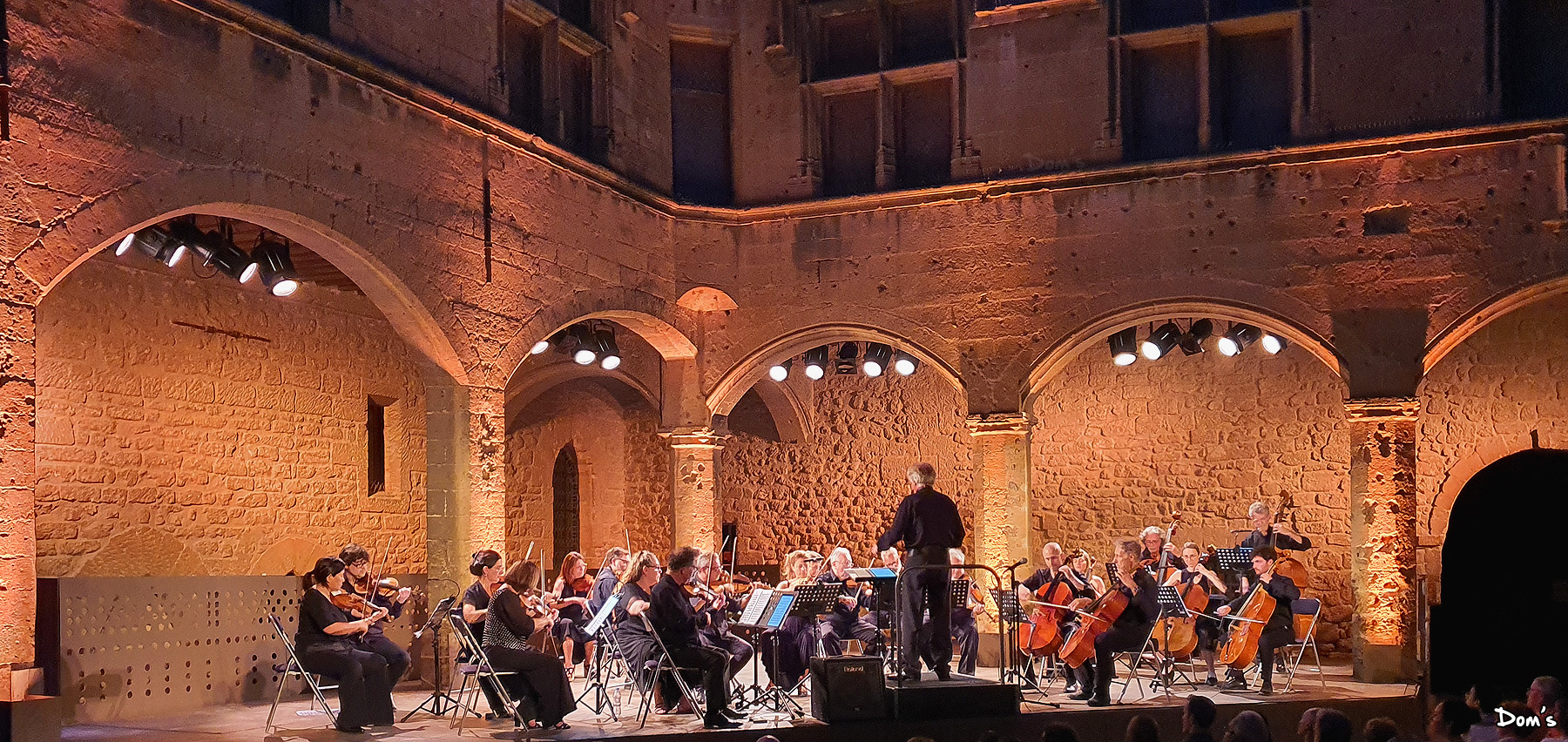 Sérénades pour cordes ce mercredi soir dans la cour du château de l'Empéri, par le philharmonique Provence Méditerranée sous la baguette de Jacques Chalmeau. A noter que les musiciens ont été ponctuellement accompagnés par la Patrouille de France qui a survolé le château à plusieurs reprises pendant le concert.