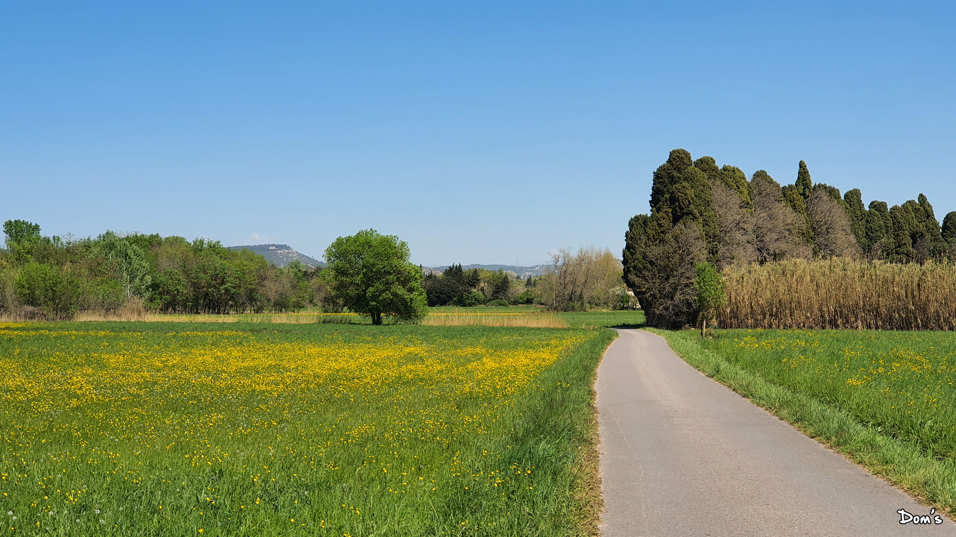 Je ne me lasse pas de la campagne de Grans. Balade à vélo un après-midi d'avril. J'ai franchi le cap des 1000 kilomètres sur mon petitou de 16 pouces.